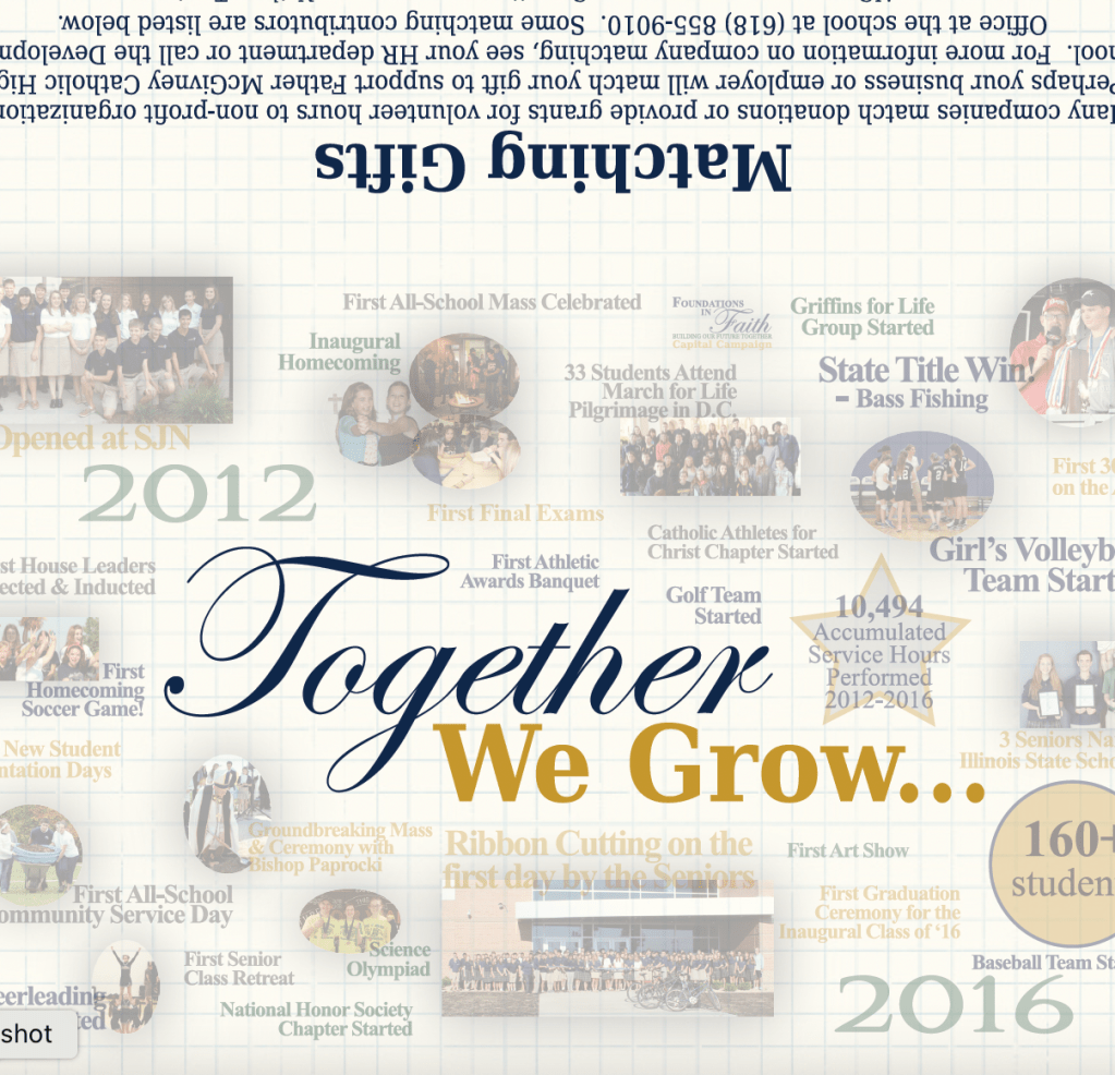 This piece was designed to highlight the growth of the school for an annual appeal just before the inaugural group of students graduated out of our new school building. It was distributed to our supporters, prospects, school families, and in local church bulletins.