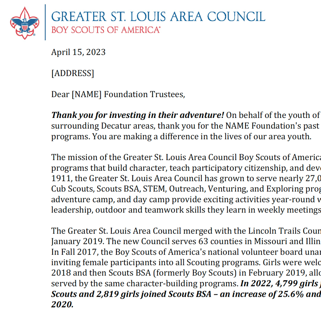 This piece was designed and written to show the strength of Scouting during COVID shutdowns. It was sent to donors that hadn’t yet supported for the year.